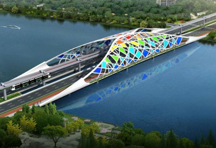 结构形式:钢箱梁(跨磁悬浮)总用钢量约:2600吨