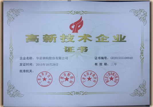 华星钢构股份限责任公司被授牌为“高新技术企业”